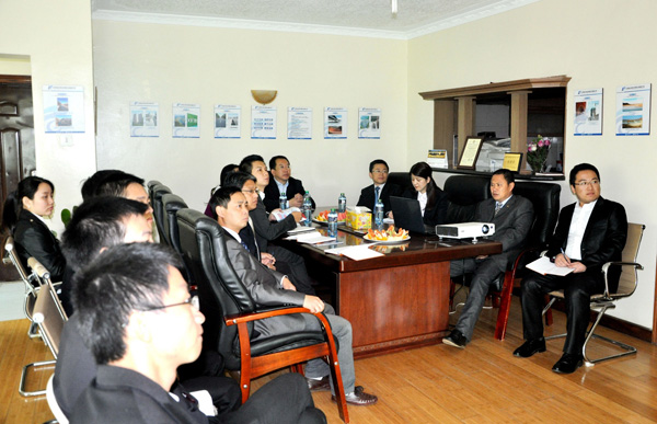 當?shù)貢r間2015年7月16日,中國駐肯尼亞經(jīng)濟商務處參贊郭策一行到我司肯尼亞分公司調(diào)研。肯尼亞分公司總經(jīng)理賀翔、副總經(jīng)理彭紅軍及相關(guān)人員迎接并陪同調(diào)研。